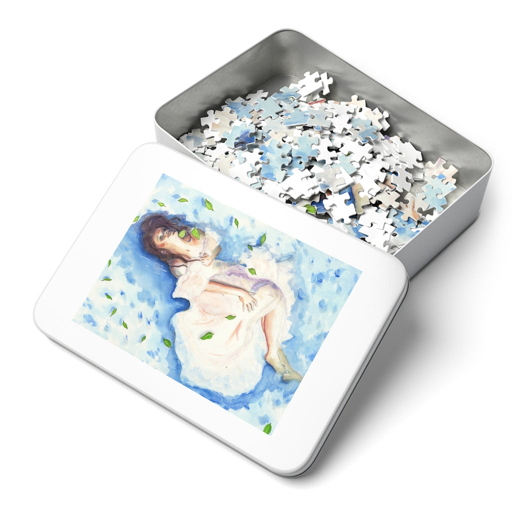 This 252 piece puzzle is available in 11x14 inches. This original artwork is sublimated on chipboard material, then finished in satin. This diecut puzzle board comes contained in a stylish metal tin. The game’s 252 precisely interlocking pieces make an excellent gift for any soon-to-be puzzled enthusiasts. It’s nowhere near the difficulty of a thousand+ pieces while still being challenging enough to draw the whole family’s attention for an evening.
