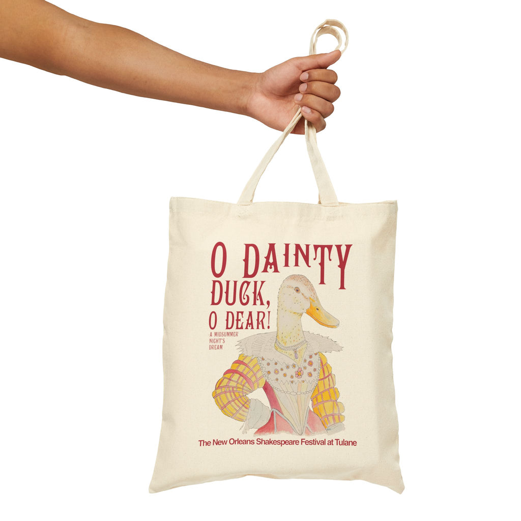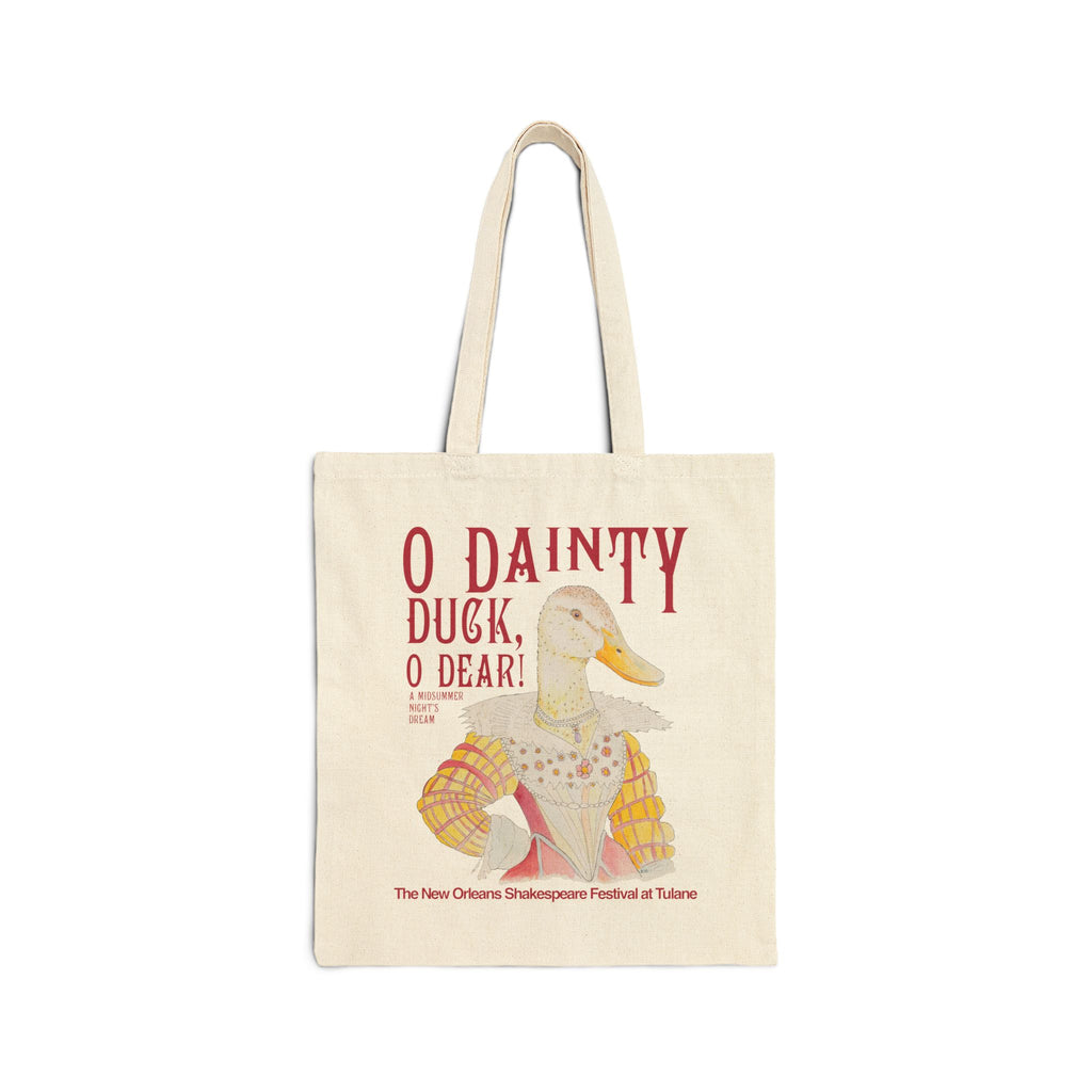 Add a bit of theatrical charm to your everyday routine with the “O Dainty Duck” canvas tote bag. A playful nod to the whimsical world of Shakespeare, this bag balances artistic flair with everyday practicality. Designed with a spirited illustration and text that celebrates both beauty and wit, it’s a standout piece for those who love to carry a bit of magic wherever they go.